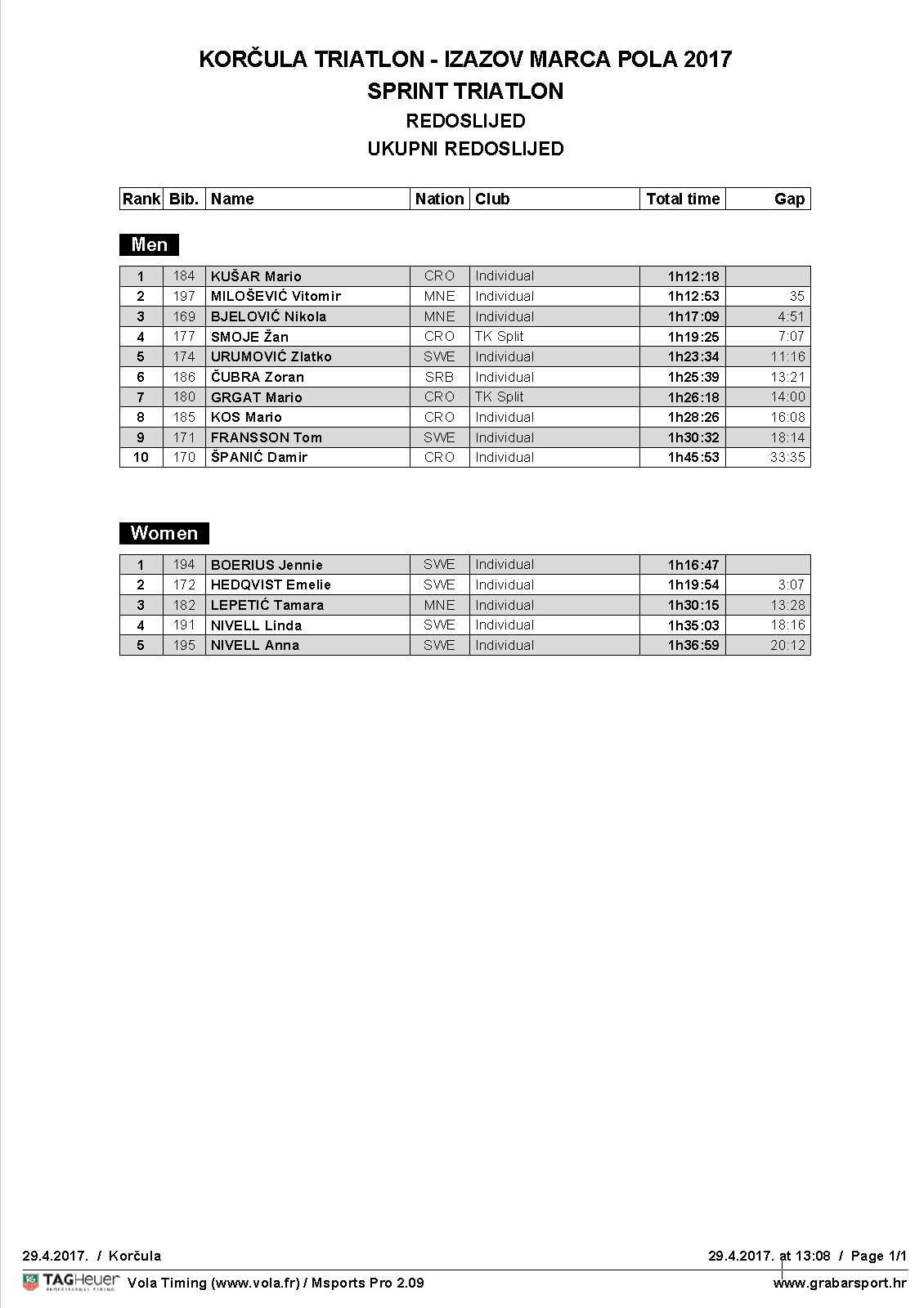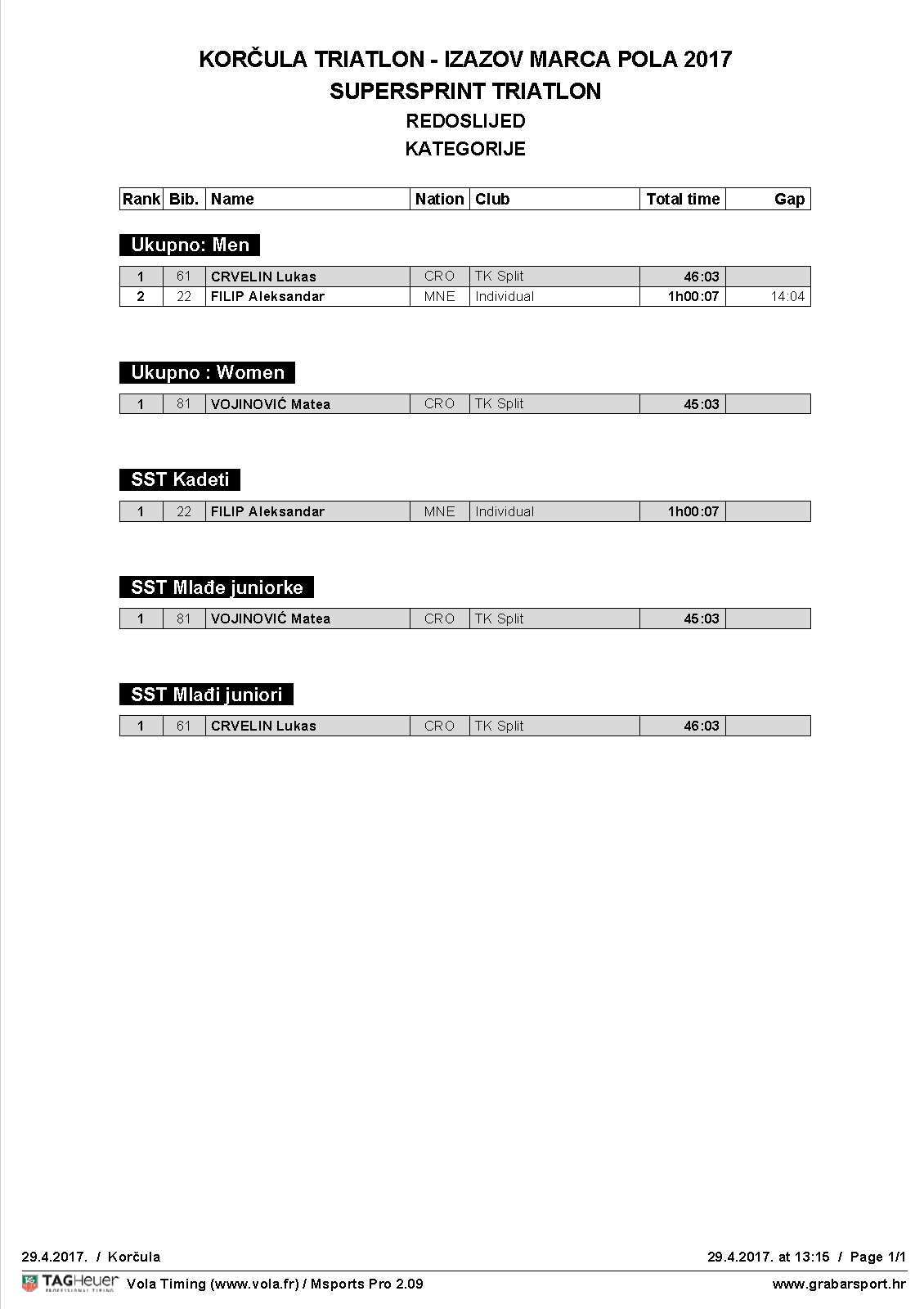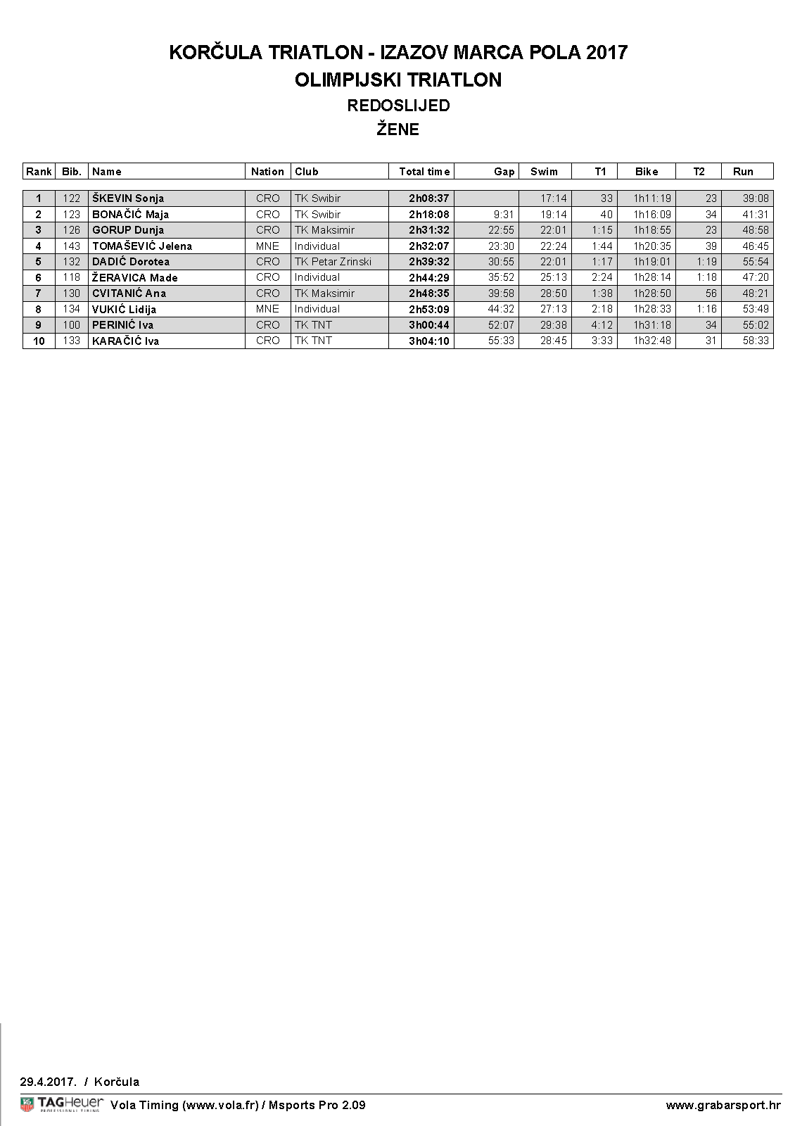 OLIMPIJSKI TRIATLON olimpijski triatlon mu�ki olimpijski triatlon - �ene SPRINT TRIATLON sprint triatlon - pojedina�no sprint triatlon - �tafete SUPERSPRINT TRIATLON supersprint triatlon - pojedina�no supersprint triatlon - �tafete Uli�na UTRKA 10 km uli�na utrka 10 km JO� REZULTATA: GRABAR SPORT - TRIATLON